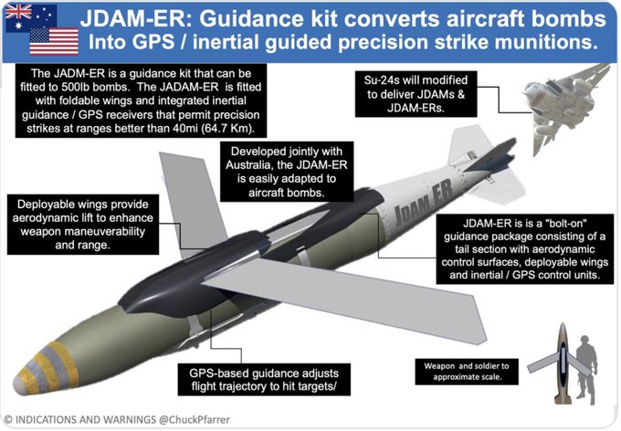JDAM-ER eli lentokoneiden pommeihin kiinnitettävä ohjausjärjestelmä on USAn viranomaisten mukaan Ukrainan käytössä. Tämä lisää merkittävästi hävittäjien osumatarkkuutta eikä pommin lentoa saa kunnolla häirittyä edes GSM-jammereilla koska pommi jatkaa lentoaan kohteeseensa aiemman ohjauksen perusteella kohtuullisella osumatarkkuudella.