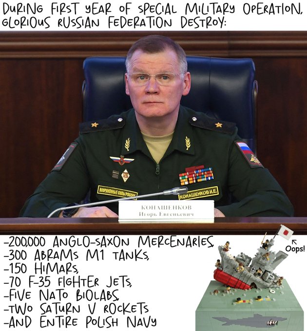 ISW on arvioinut, että Bakhmutin taistelut voivat tuhota Wagnerin armeijan. Viimeisimpien tietojen mukaan hyökkäystä eivät enää tekisi vangit tai muutkaan mobnikit vaan Wagnerin kantapeikot yhdessä Venäjän eliittijoukkojen (no, eliitti ja "eliitti") kanssa. Jos noin on, niin vitsit ovat kohta vähissä ja pääkokinkin kyljykset palaneet pohjaan kuin T-62 Javelinin osumasta.