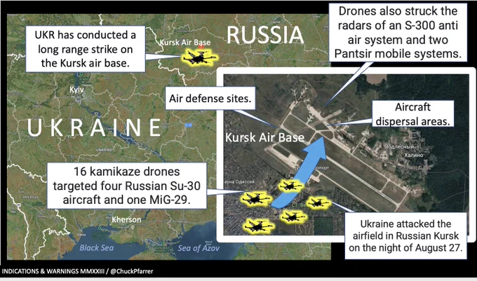 Venäjän Pihkovan sotilaslentokentälle on tehty lennokki-isku jossa vaurioitui neljä Iljushin-kuljetuskonetta joita on käytetty sodassa materiaalien ja miehistön siirtoihin. Ainakin kaksi koneista syttyi tuleen.